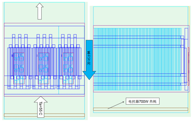 假设系统进风温度55?C,进过电抗后风温为57.1?C,假设使用导热介质0.15mm,K=3W/m*K)