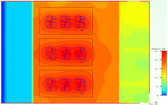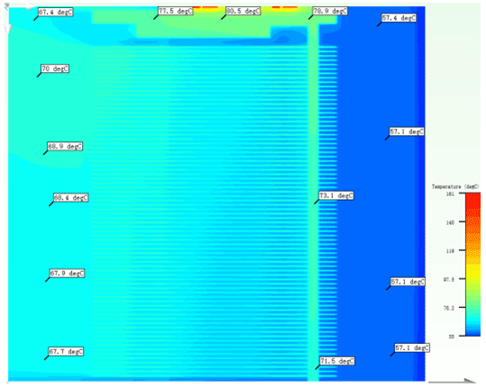 (散热器实际进风温度~57.1?C,散热器底板最高温度85.1?C,理论分析温升28?C)