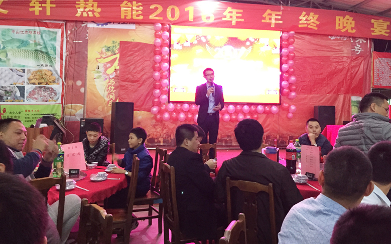 晚宴由主持人宣布开始,并由主持人为文轩热能对2016年作简单的总结,接下来是由总经理周吉勇先生发言,周总的发言主要是对2017年提出了要求和期望。为提升文轩的公司文化,周总还提出了要让“以客户为中心,以员工为根本,以持续创新为主导”成为今后公司发展的企业文化,得到了全体员工的热烈欢呼、积极响应。