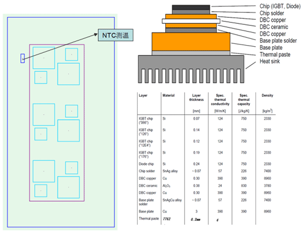 假设系统进风温度55?C,进过电抗后风温为57.1?C,假设使用导热介质0.15mm,K=3W/m*K)
