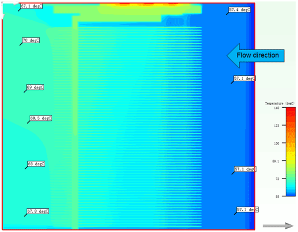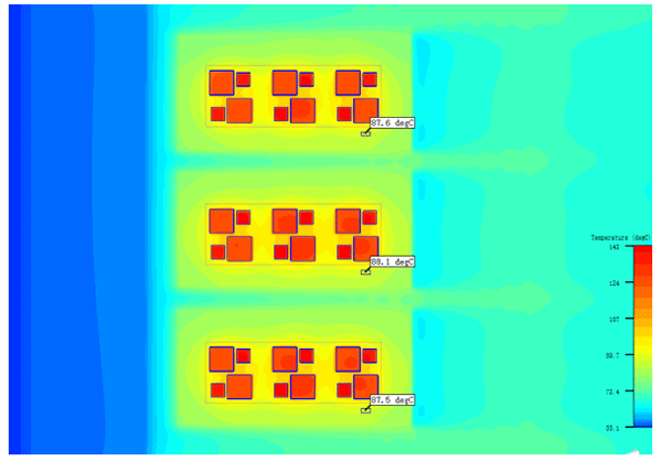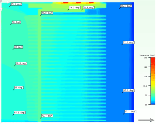 (散热器实际进风温度~57.1?C,散热器底板最高温度85.1?C,理论分析温升28?C)